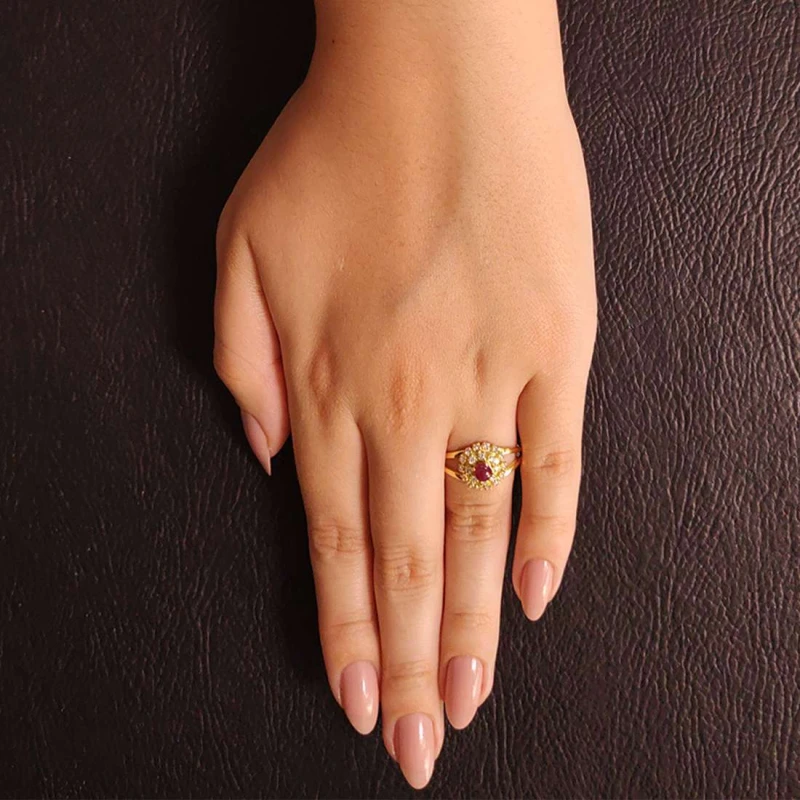 Pedras: 01 rubi de 40 pontos e 33 pontos de diamantes