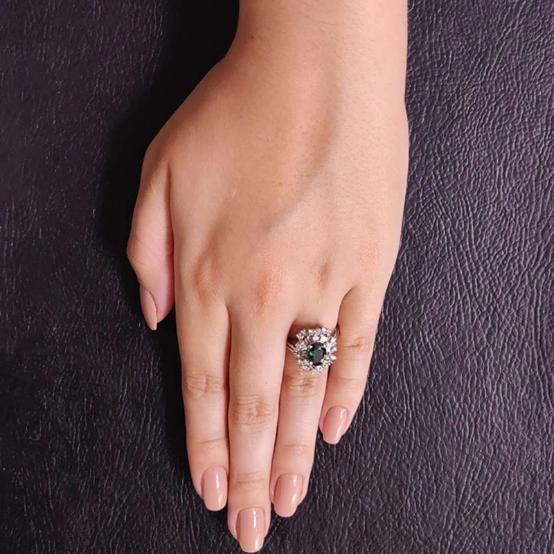 Anel Em Ouro Branco, Turmalina E Diamantes