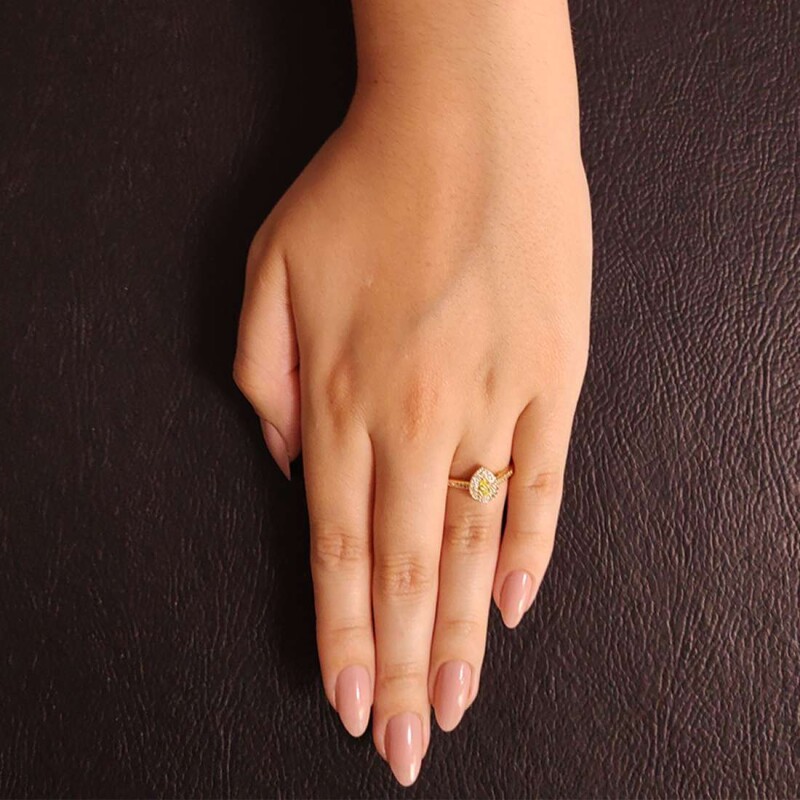 Pedras: 01 diamante amarelo de 08 pontos e 48 diamantes