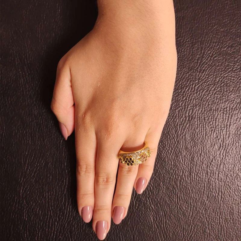 Anel Em Ouro 18K, Rubis, Safiras E Diamantes