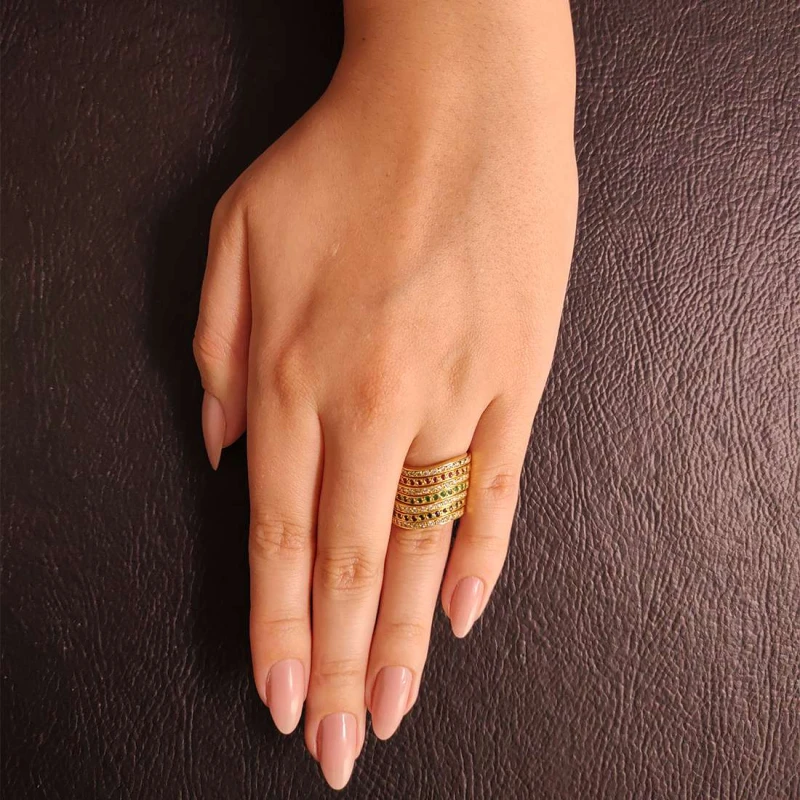 Anel Em Ouro 18K, Rubis, Safiras, Esmeraldas E Diamantes