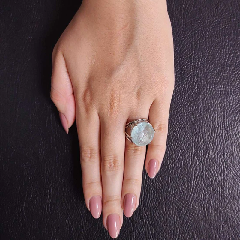 Anel Em Ouro Branco E Água Marinha