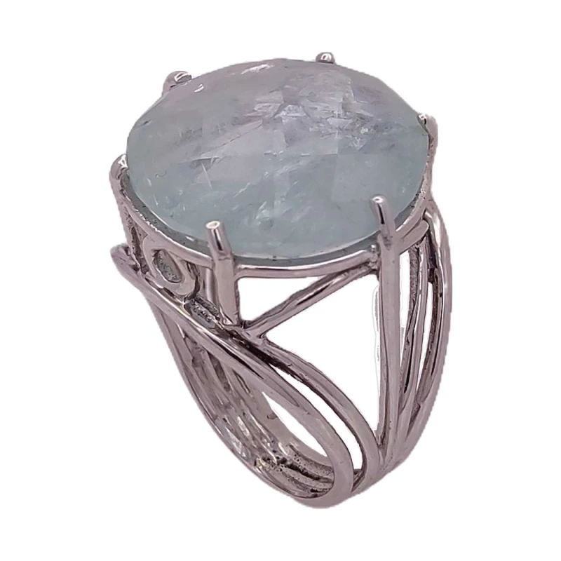 anel ouro branco e Água marinha