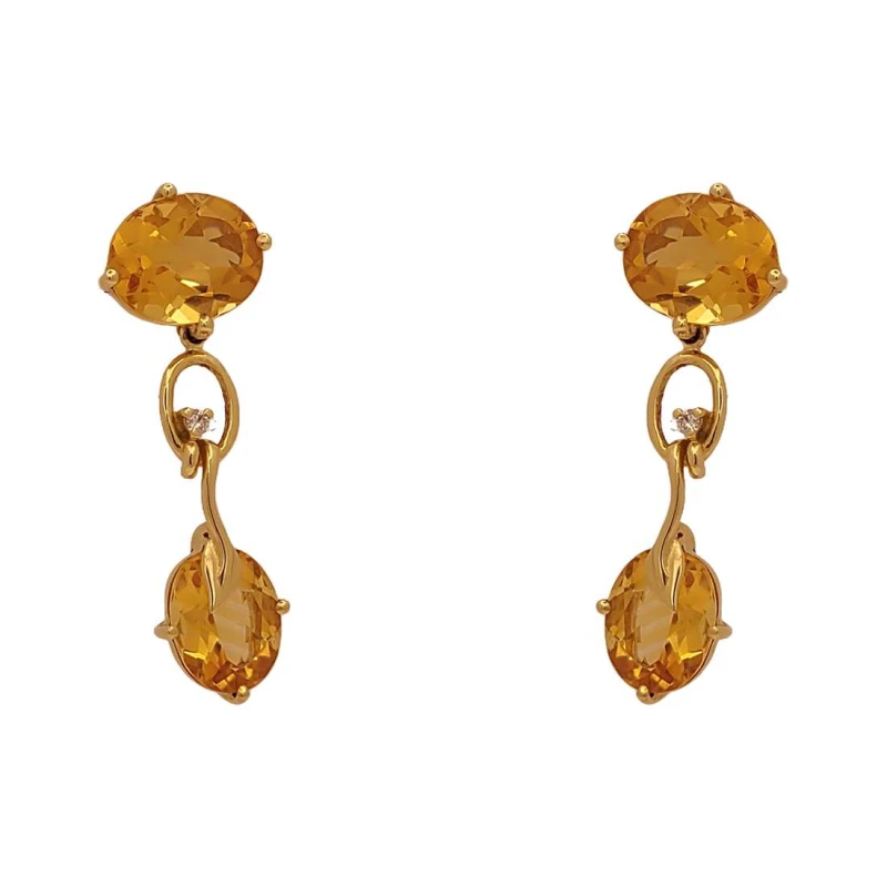 Brincos Em Ouro 18K, Citrinos E Diamantes