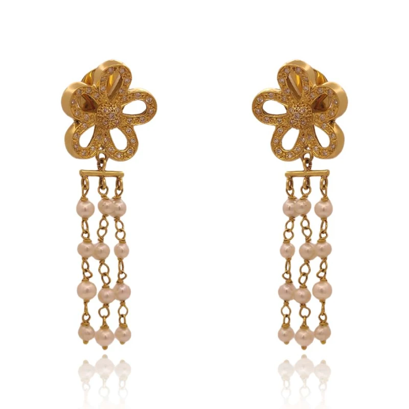 Brincos Em Ouro 18K, Pérolas E Diamantes
