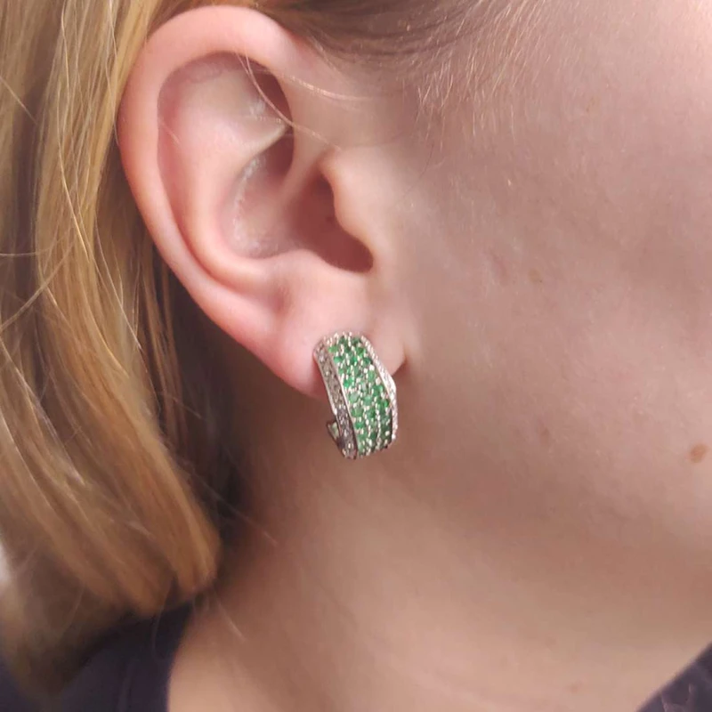 Brincos Em Ouro Branco, Esmeraldas E Diamantes