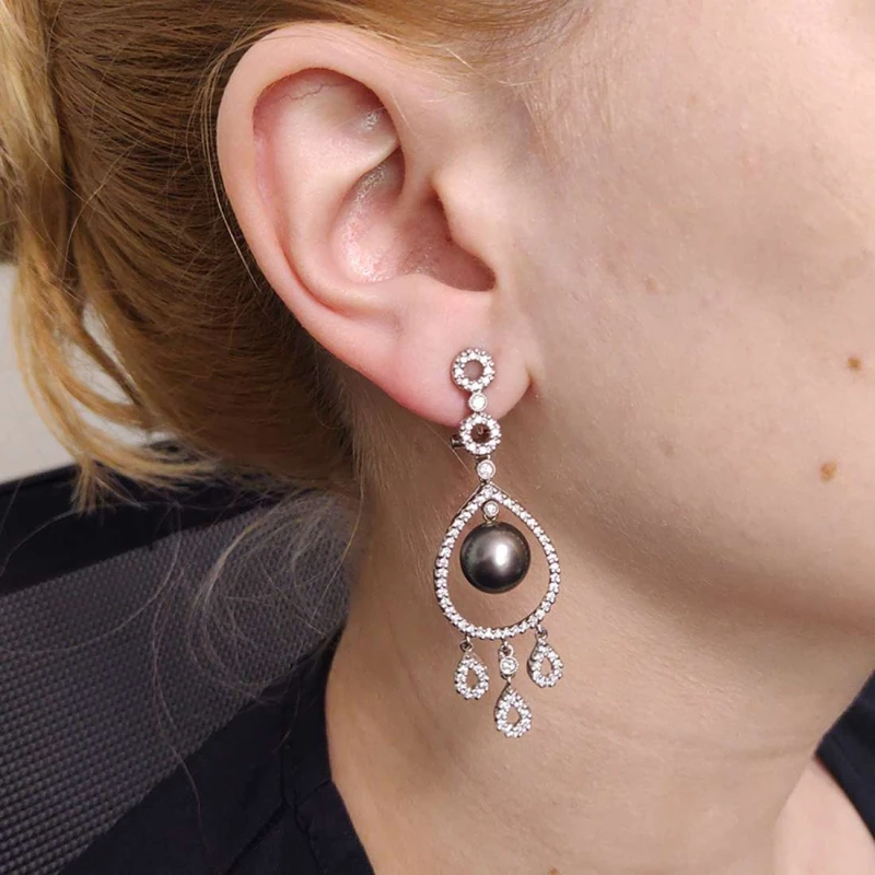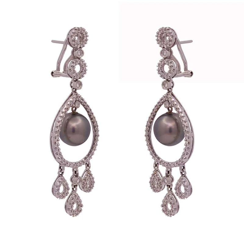 Brincos Em Ouro Branco, Pérolas E Diamantes