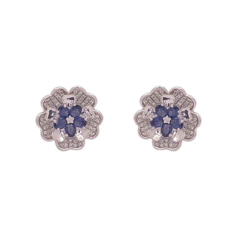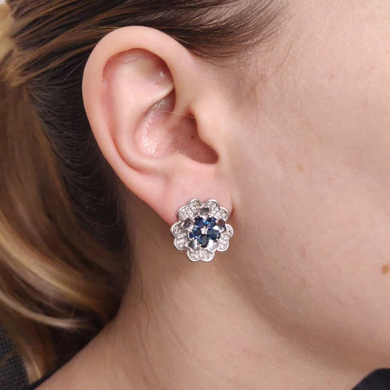 Brincos Em Ouro Branco, Safiras E Diamantes