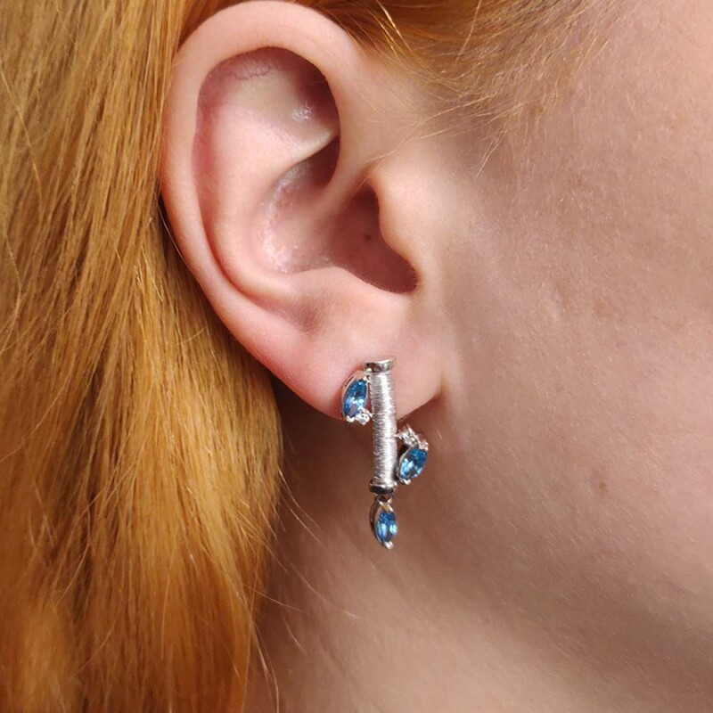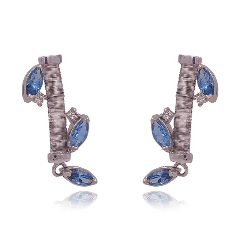 Brincos Em Ouro Branco, Topázios E Diamantes