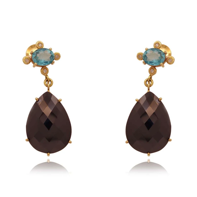 Brincos Em Ouro 18K, Onix, Topázios E Diamantes