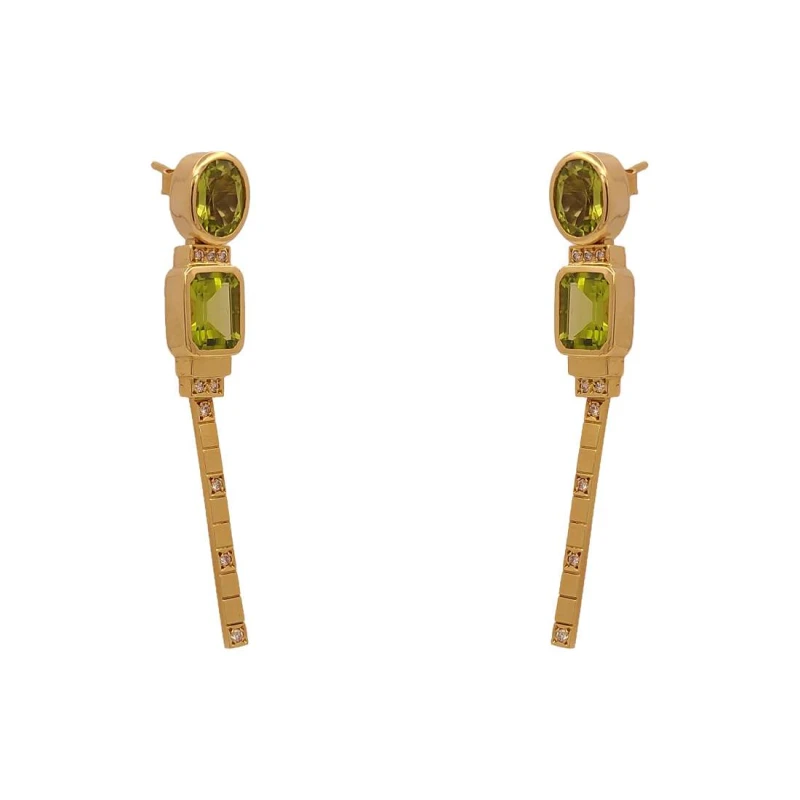 Brincos Em Ouro 18K, Peridotos E Diamantes