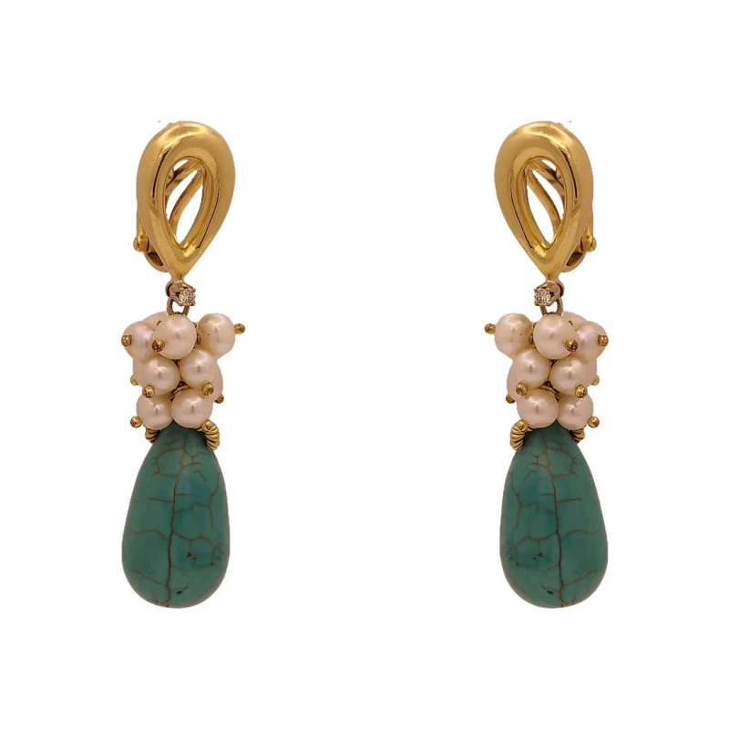 Brincos Em 18K, Pérolas, Turquesas E Diamantes