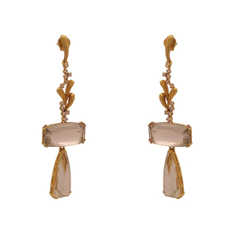 Brincos Em Ouro 18K, Praziolitas E Diamantes