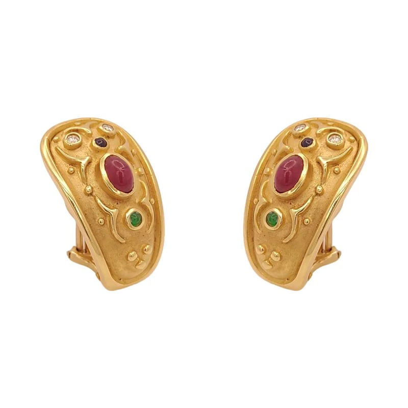 Brincos Em Ouro 18K, Rubis, Safiras, Esmeraldas E Diamantes