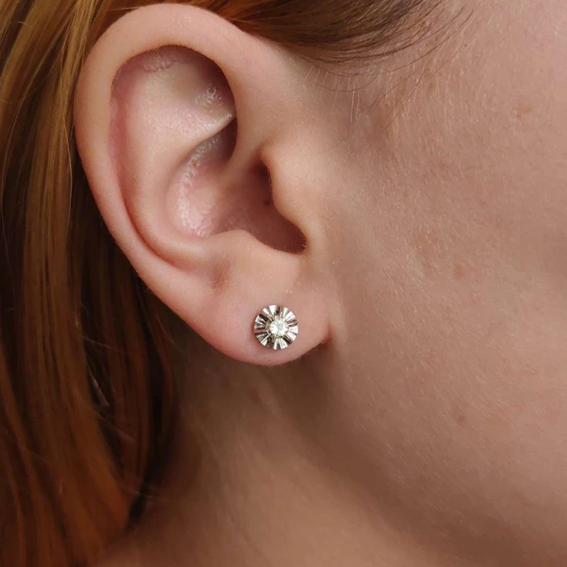 brincos ouro branco e diamantes solitário