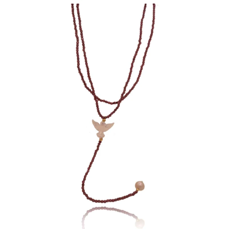 Colar Em Granadas, Pérola, Madrepérola E Detalhes Em Ouro 18K