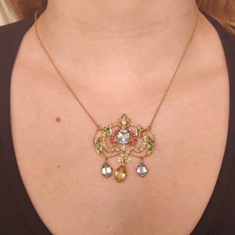 Colar Em Ouro 18K, Esmeraldas, Rubis, Citrinos, Águas Marinhas E Diamantes