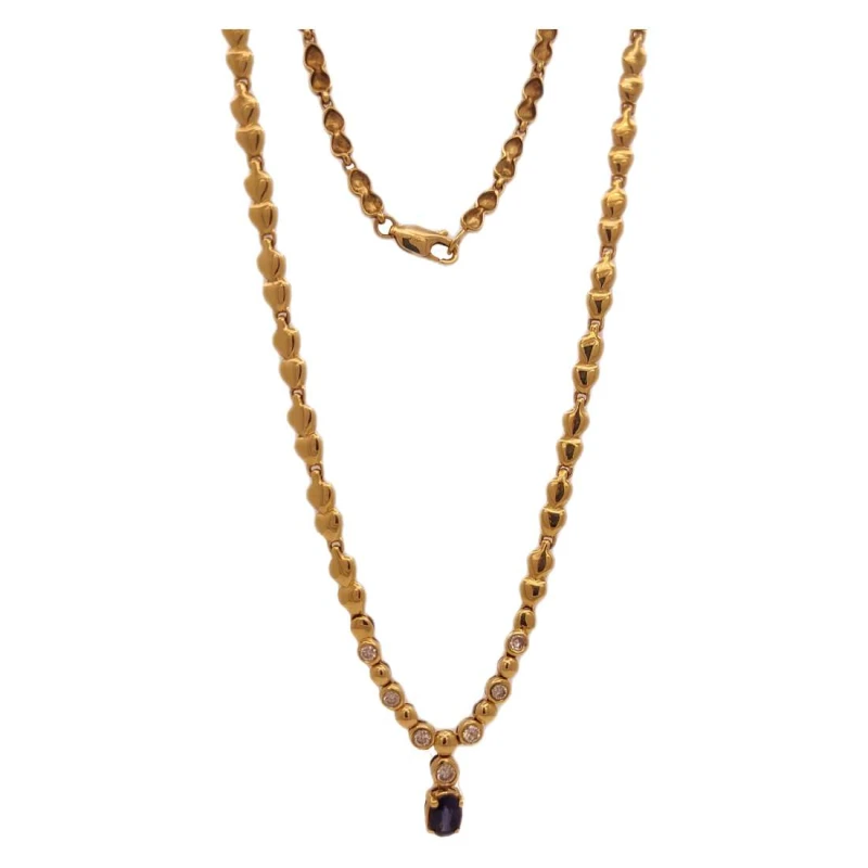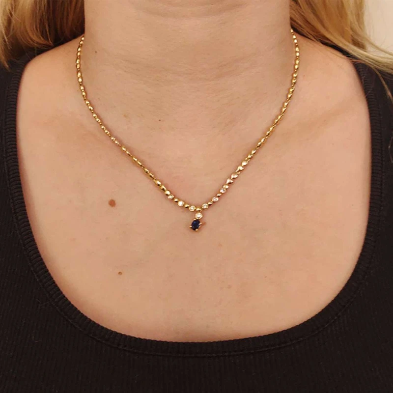 Pedras: 01 safira azul e 23 pontos de diamantes