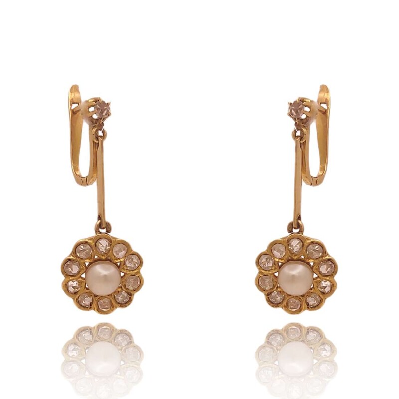 Brincos Em Ouro 18K, Pérolas E Diamantes