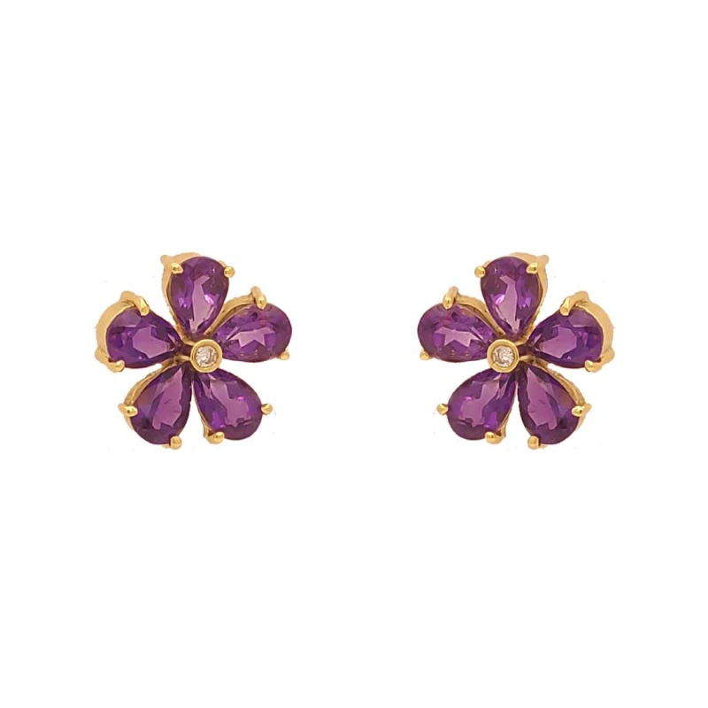 Brincos Em Ouro 18K, Ametistas E Diamantes
