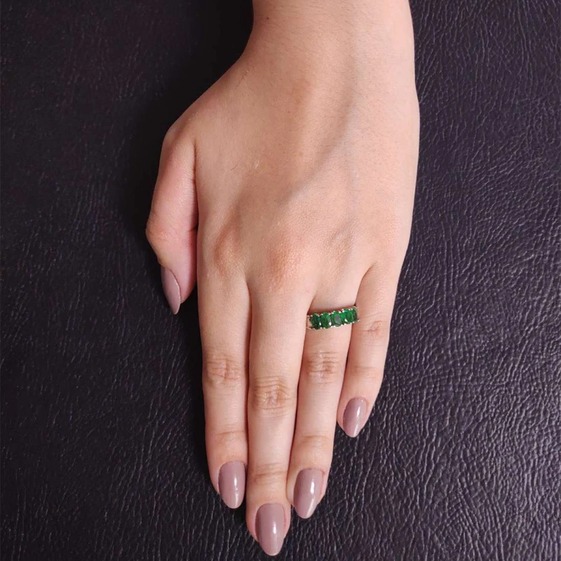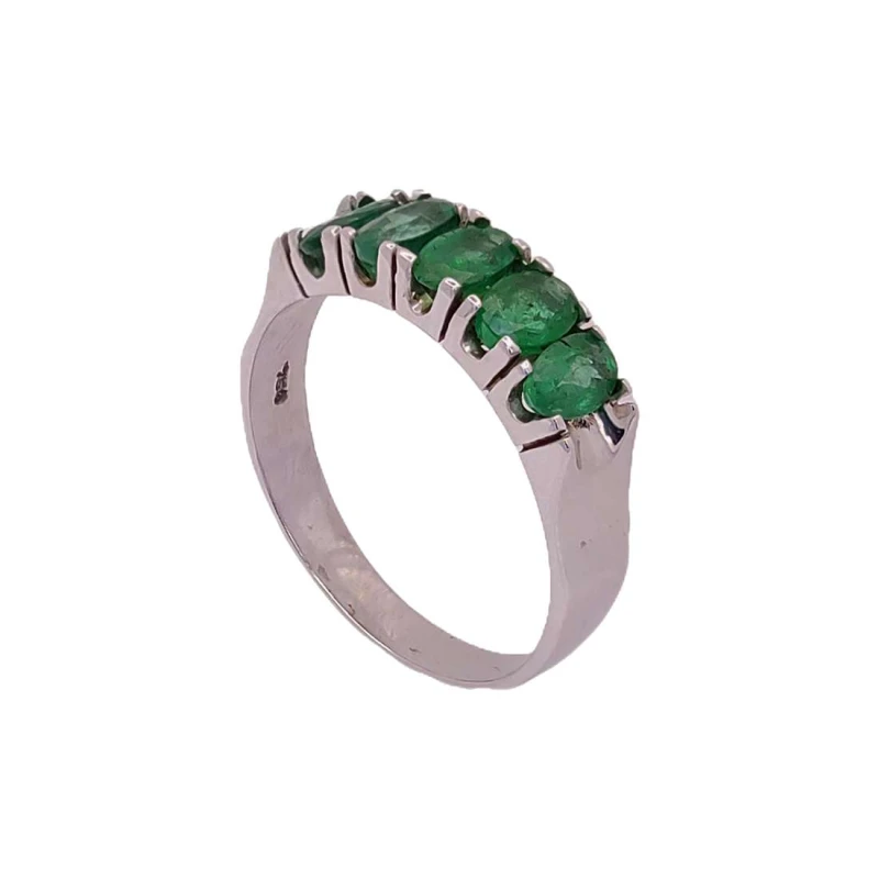 Meia Aliança Em Ouro Branco E Esmeraldas