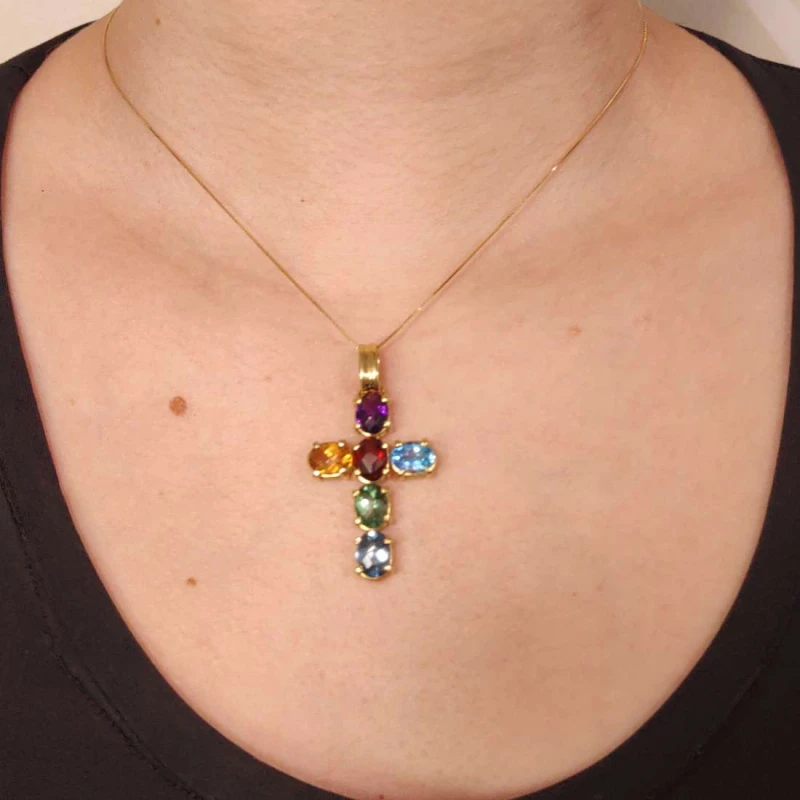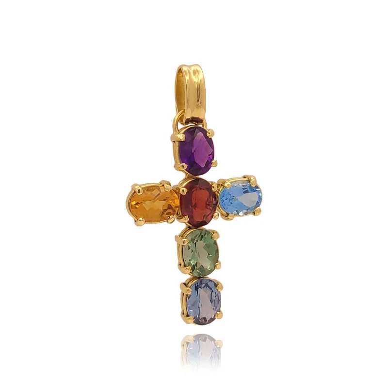 Pingente Em Ouro 18K E Pedras Brasileiras