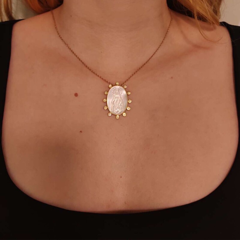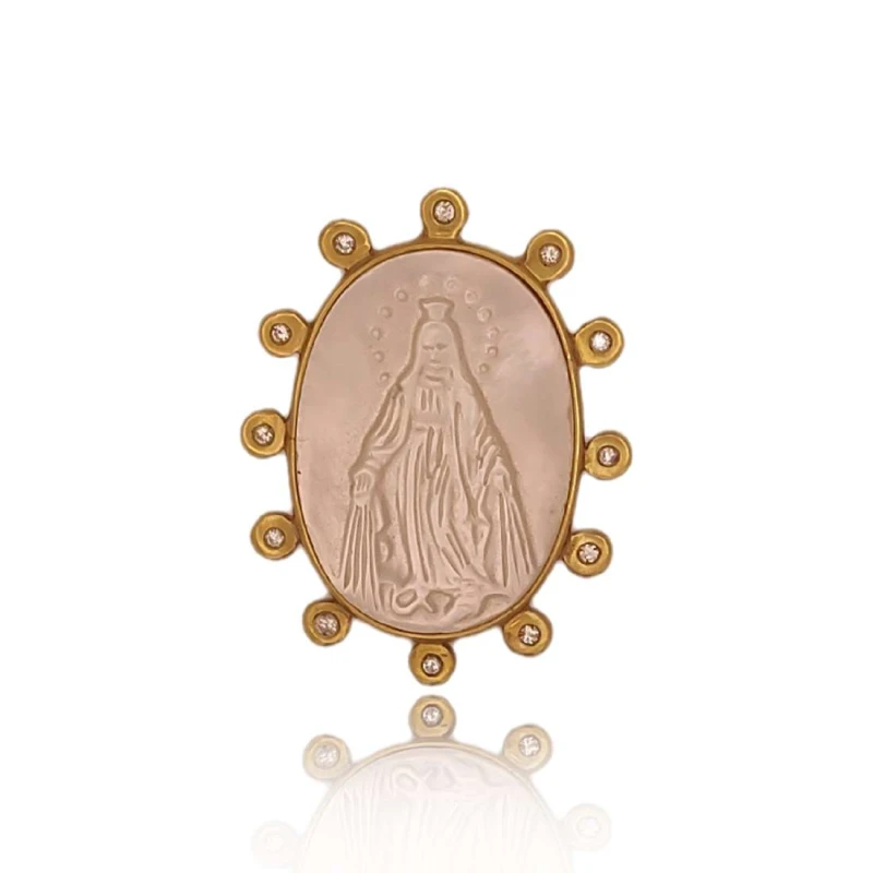 pingente ouro 18k, madrepérola e diamantes