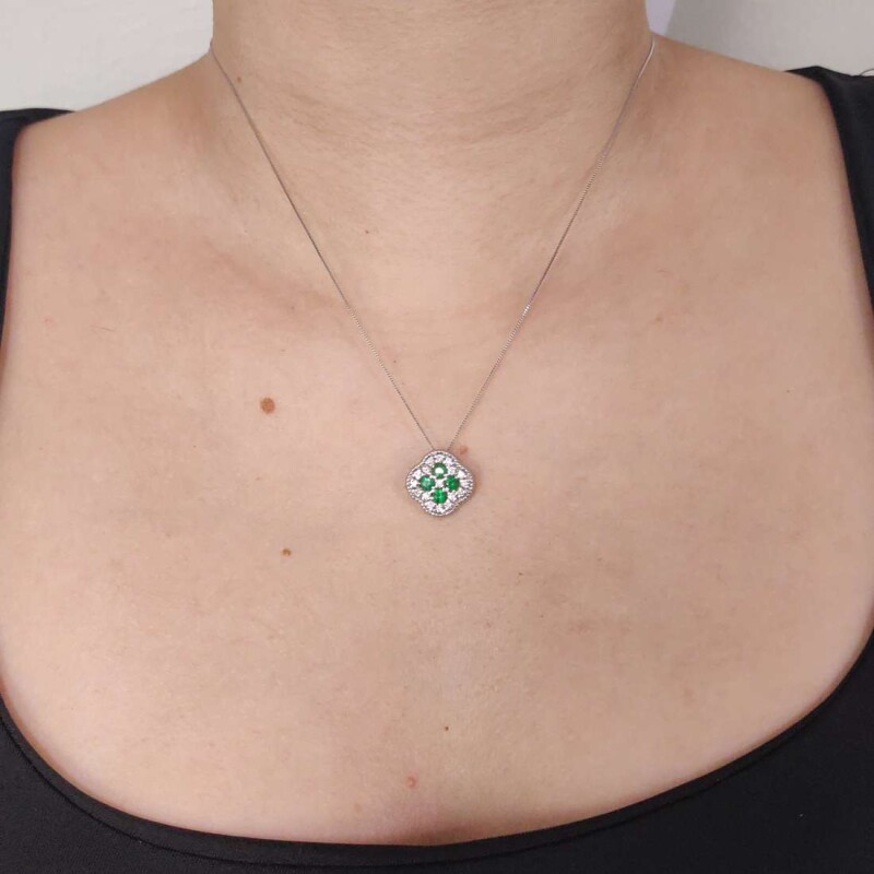 Pingente Em Ouro Branco, Esmeraldas E Diamantes