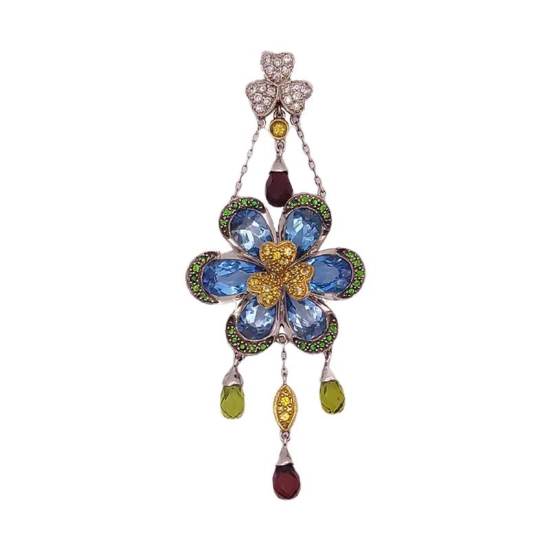 Pingente Em Ouro Branco, Esmeraldas, Safiras, Peridotos, Granadas, Topázios E Diamantes
