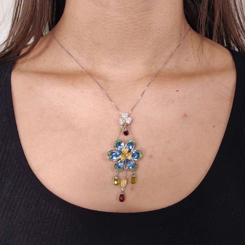 pingente ouro branco, esmeraldas, safiras, peridotos, granadas, topázios e diamantes
