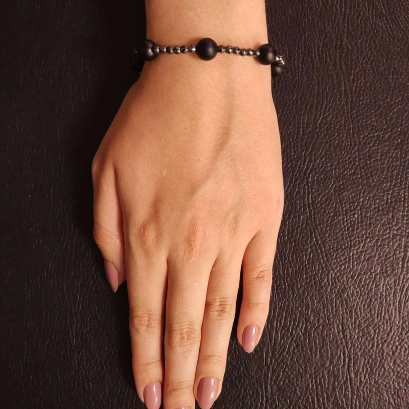 pulseira hematitas, onix e fecho ouro 18k rodio negro
